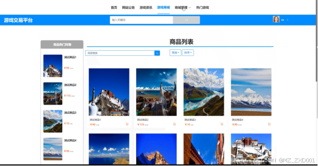 分类列表: 管理游戏物品的分类列表,方便用户浏览和搜索。