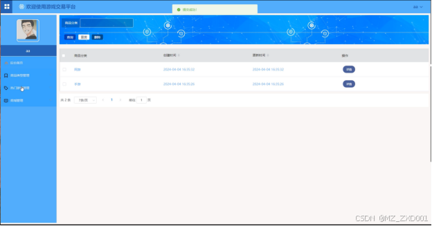 商品类型管理: 商家可以管理游戏物品的分类信息,包括添加、编辑和删除商品类型等操作。