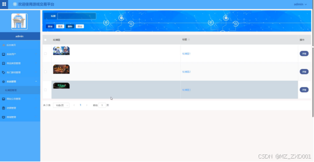 管理员点击“系统管理”这一菜单会显示轮播图这一个子菜单,管理员可以对前台展示的轮播图进行设置,界面如下图4-14所示。