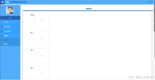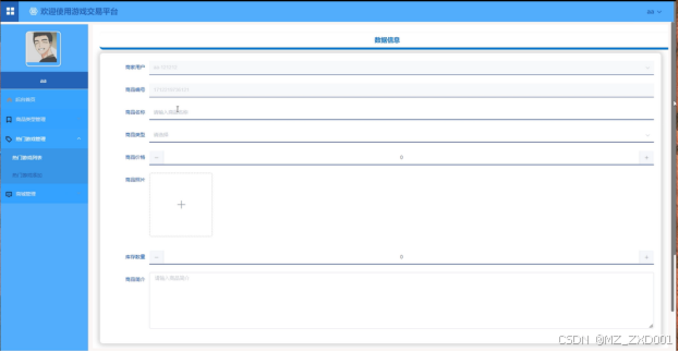 当商家用户点击“ 游戏商城”按钮后,商家可以添加和管理商品信息,界面如下图4-11所示。