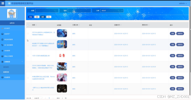 游戏资讯: 管理系统发布的游戏资讯信息。
