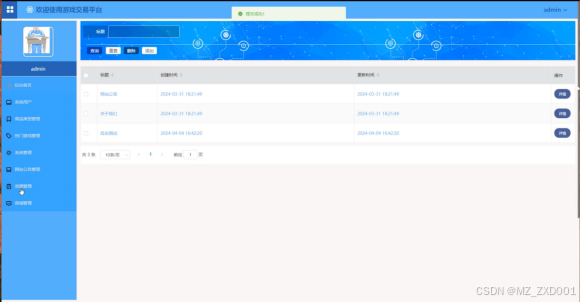 网站公告管理: 管理系统发布的公告信息,包括添加、编辑和删除公告等。