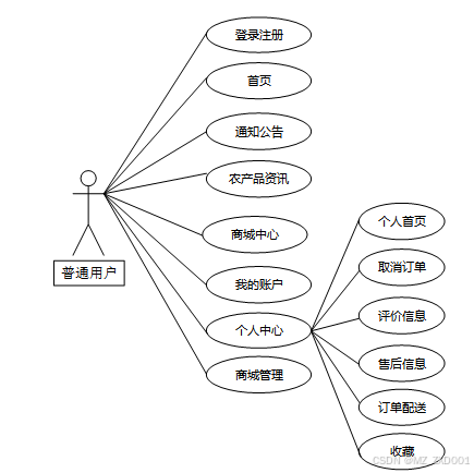 在设计层面,平台注重用户体验和功能性,通过合理的架构设计,实现了用户注册与登录、首页浏览、通知公告发布、农产品资讯展示、商城中心购物、订单管理、地址管理、账户管理以及个人中心等一系列功能。同时,根据用户角色的不同,平台提供了针对普通用户、农户用户和管理员的不同权限和功能模块。