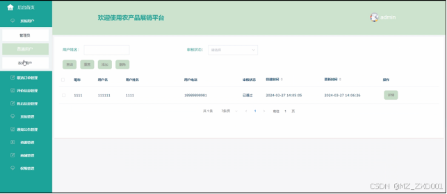 基于springboot“冀州农品”展销平台中的管理人员是可以对注册的普通用户、农户用户进行管理的,也可以对管理员进行管控。界面如下图5-12所示。