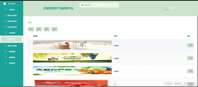 轮播图管理: 管理系统首页轮播图信息,包括添加、编辑和删除图片等。