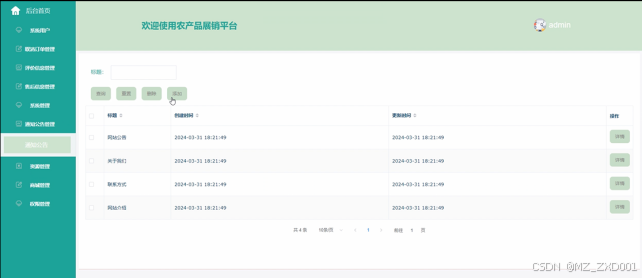 通知公告管理: 管理发布的通知公告信息,包括添加、编辑和删除等操作。