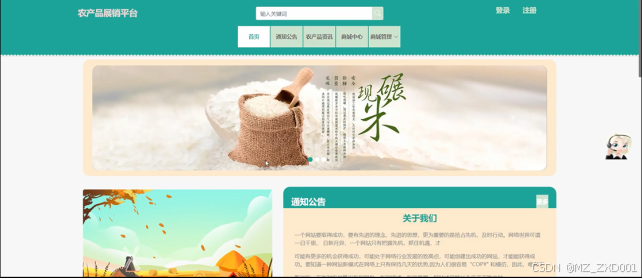 首页: 展示通知公告、农产品资讯、推荐商品等内容,引导用户浏览和购买。