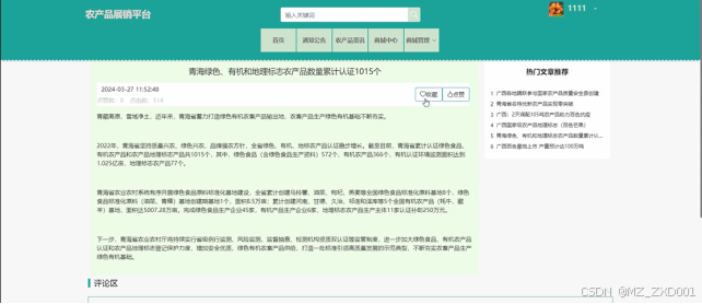 This article elaborates on the design and implementation process of a "Jizhou Agricultural Products" exhibition and sales platform based on web technology. This platform aims to provide an online exhibition and sales channel for agricultural products in Jizhou, promoting the sales of agricultural products and brand promotion.