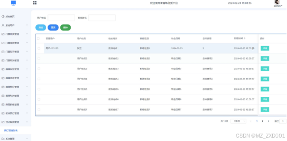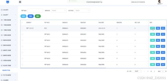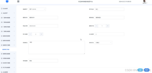 通过器具预订管理页面,管理员管理、维护器具预订,可以查看器具价格、预订数量、特定日期、总共费用、审核状态等信息,并进行审核等操作,器具预订列表界面如下图所示。