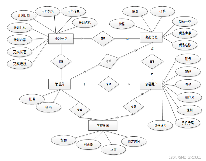 下面是整个校园综合服务App平台中主要的数据库表总E-R实体关系图。