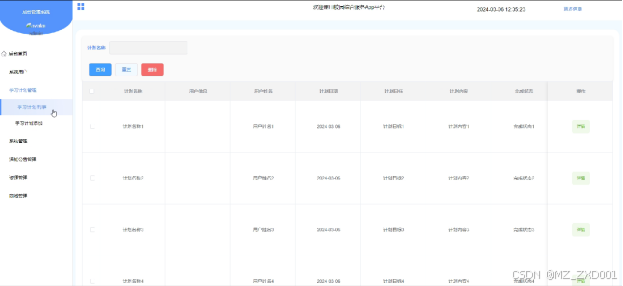 - 学习计划管理:管理员点击“学习计划列表”可查看学生用户为自己制定的学习计划详情信息。