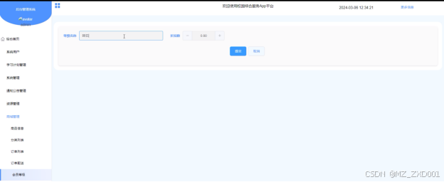 管理员点击“会员等级”可以查看所有的会员等级信息,点击“添加”可为会员添加等级信息,方便用户购买商品时候享受会员折扣,可以对会员等级信息进行搜索、修改和删除操作。其界面如下图4-9所示。
