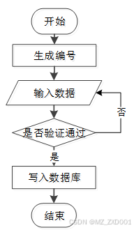 用户成功登入系统后就能够实现增加数据的操作,增加数据的编号由系统生成,用户不能随意填写,除了编号以外,其他增加信息用户自己填写,填写后的信息经过系统验证,验证通过后即可完成数据新增,数据新增的流程图如下图2-1所示。