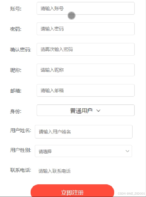 - 注册登录:用户在注册页面填写用户账号、密码、确认密码、用户名、性别、手机号码等信息后点击“注册”按钮完成注册,用户注册后可以通过自己的账户名和密码进行登录。