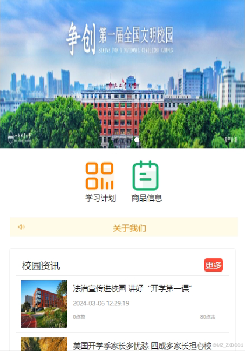 - 首页:用户登录后,可以查看首页展示的轮播图、商品信息、学习计划、校园资讯等信息。