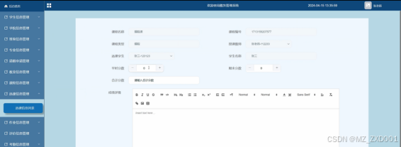 其次,系统实现了学生信息管理、教师管理、课程管理、成绩管理等核心功能模块,为学校教务工作提供了全面的支持。管理员和教师可以通过系统轻松管理学生档案、安排课程表、录入成绩等任务,实现教务工作的精细化管理和数据化运营。