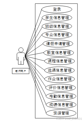教务管理系统中教师用户角色用例图如图2.2所示: