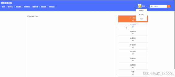 关键词:教务管理系统 ;Java;springboot+VUE;MYSQL