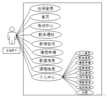 教务管理系统中学生用户角色用例图如图2.1所示: