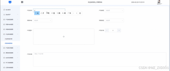 (3)产品类型管理:管理员点击可查看产品类型列表,同时可对产品类型进行增删改查。