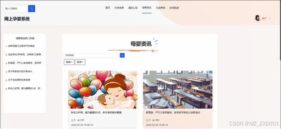 关键词:网上孕婴系统 ;Java;springboot+VUE;MYSQL