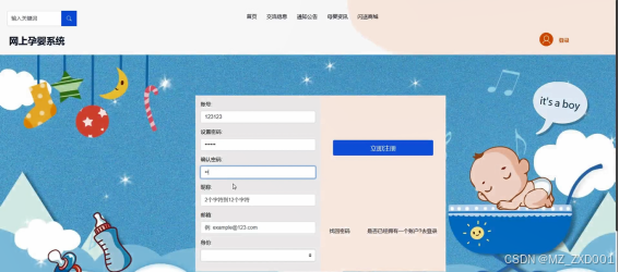 The online pregnancy and baby system has the following main functions: user registration and login, exchange of information, maternal and child consultation, flash shopping mall and online video. Through the system, users can communicate and share experiences with other parents, obtain professional maternal and child counseling services, purchase needed maternal and child supplies, and watch related online educational videos.