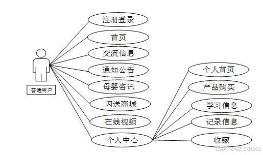 网上孕婴系统中普通用户角色用例图如图2.2所示: