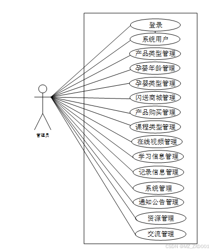 网上孕婴系统中管理员角色用例图如图2.3所示: