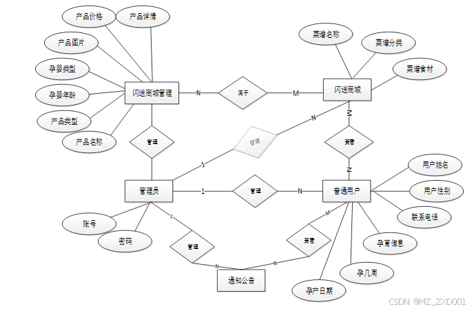 下面是整个网上孕婴系统中主要的数据库表总E-R实体关系图。