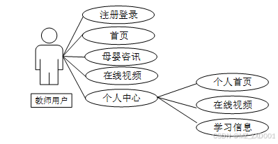 网上孕婴系统中老师用户角色用例图如图2.1所示: