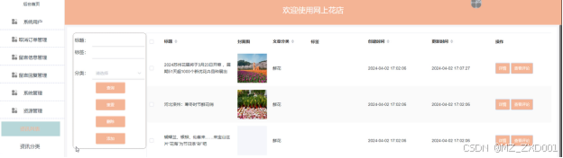 | 预期结果 | 可以查看到所有鲜花咨讯信息 |