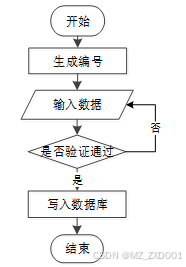 用户成功登入系统后就能够实现增加数据的操作,增加数据的编号由系统生成,用户不能随意填写,除了编号以外,其他增加信息用户自己填写,填写后的信息需经过系统验证,验证通过后即可完成数据新增,数据新增的流程图如下图2-1所示。