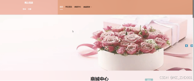 (2)首页:系统首页以上中下的布局进行展示,正上方是系统的导航栏,中间是轮播图,下面是商城中心等内容。