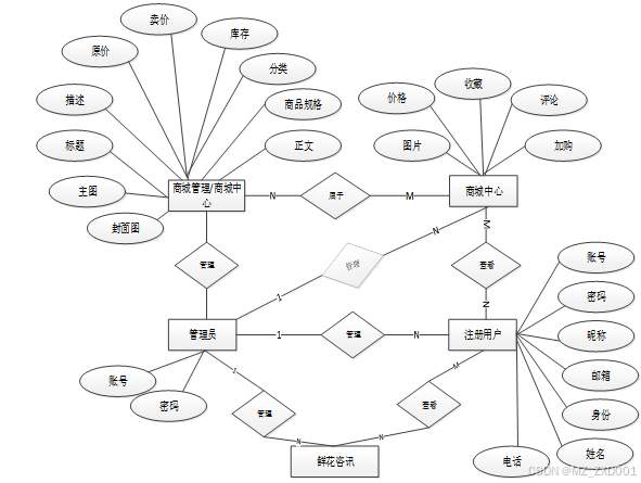 下面是整个基于 SSM 的网上花店中主要的数据库表总E-R实体关系图。
