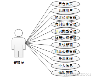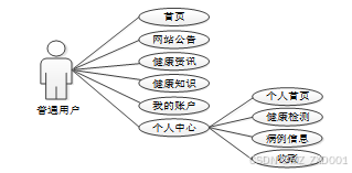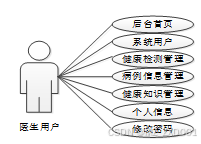 通过2.3功能的分析,得出了本健康管理及监测系统的用例图: