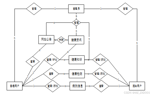 在健康管理及监测系统的设计过程中,主要采用了springboot+vue作为系统的核心框架。系统前端部分利用Vue框架进行设计与构建用户界面,后端部分采取Java语言的springboot框架进行开发与实现,采用MySQL作为后台数据的主要存储单元,实现对系统数据的添加、修改、查看和删除。本文首先分析了目前健康管理及监测中存在的问题和挑战。接着,通过需求调研和功能分析,同时考虑到用户的多样化需求,确定了健康管理及监测系统的主要功能模块,包括系统用户、健康检测管理、病例信息管理、知识类型管理、健康知识管理、系统管理、网站公告管理、资源管理等。然后,详细介绍了系统的架构设计和数据库设计,以保证系统的可扩展性和数据安全性。