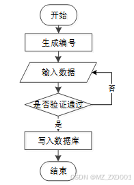 用户成功登入系统后就能够实现增加数据的操作,增加数据的编号由系统生成,用户不能随意填写,除了编号以外,其他增加信息用户自己填写,填写后的信息经过系统验证,验证通过后即可完成数据新增,数据新增的流程图如下图2-1所示。