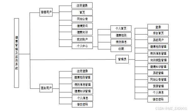 根据用户对系统的需求,要求系统简单操作,能够准确,完整的对信息进行管理。对健康资讯服务管理做需求做解析后,划分为了普通用户、医生用户和管理员三大功能板块。