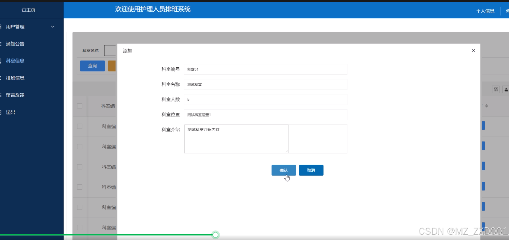 科室信息,管理员可以管理系统中的科室信息,包括添加新科室、编辑科室信息、删除科室等操作。如下图所示。