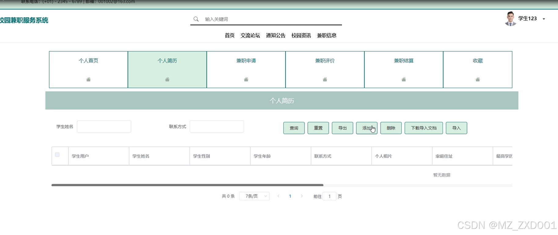 ● 个人简历:学生可以编辑和更新自己的简历,突出个人技能和经验。