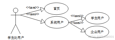2. 系统用户:管理系统中的各类用户,包括学生用户、企业用户等,进行用户注册、审核、权限设置等操作。