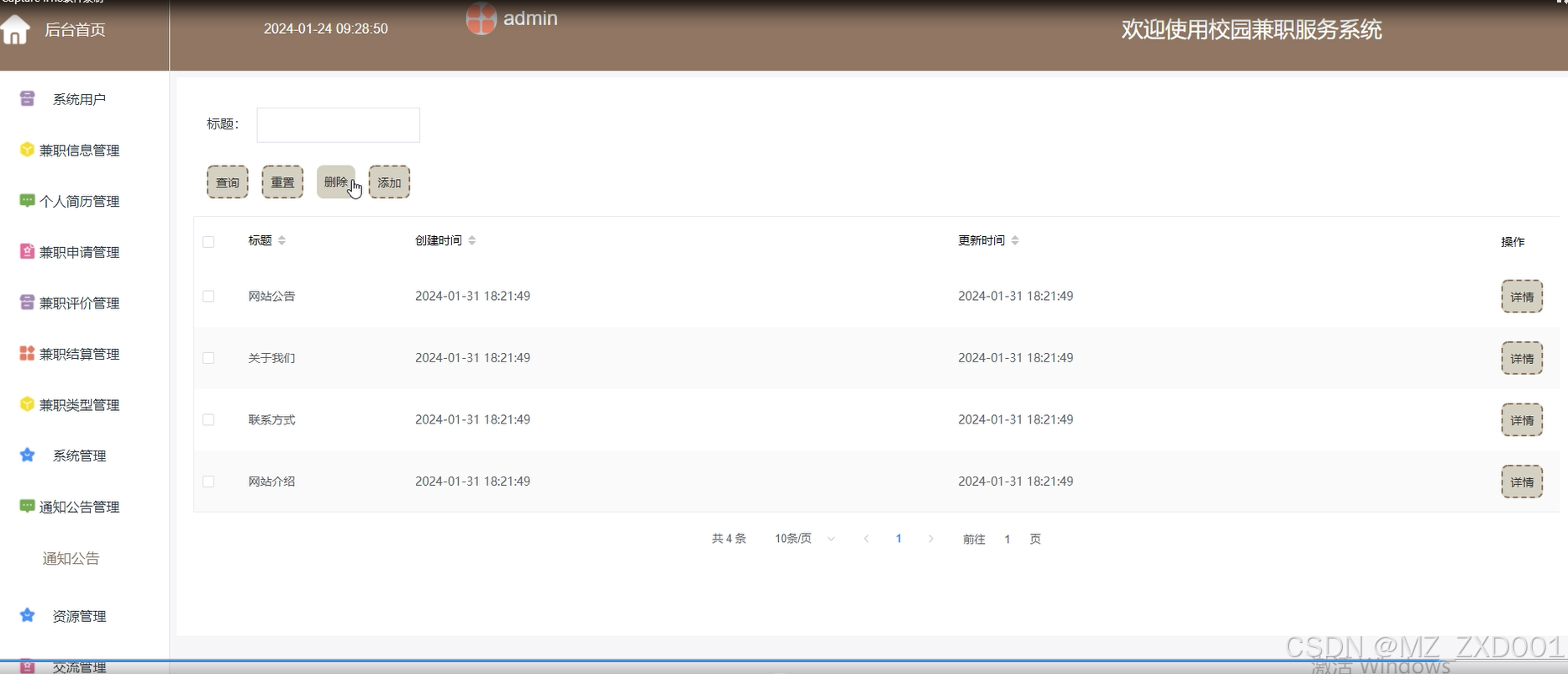 3. 兼职信息管理:发布、编辑和删除兼职信息,确保信息的准确性和及时性。