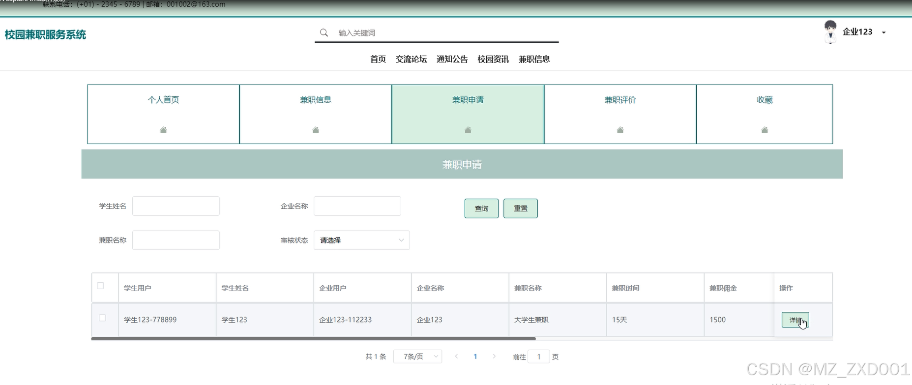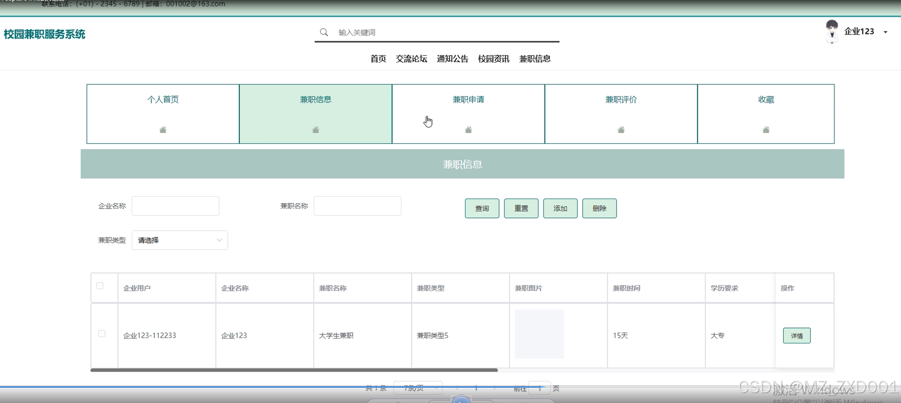 4. 兼职信息:浏览学生发布的兼职需求,企业可以根据自身需求选择合适的学生。