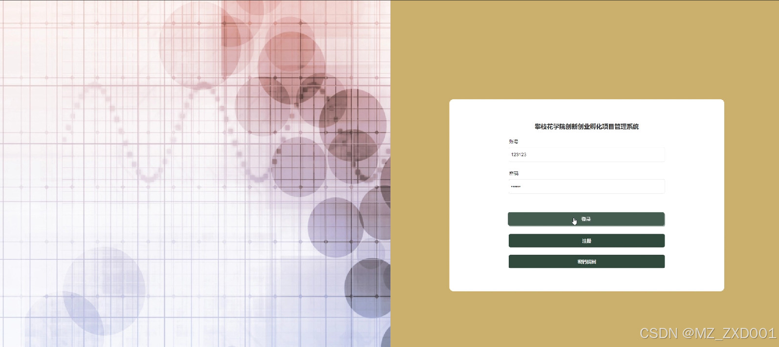 - 注册登录:注册登录功能允许用户通过输入用户名和密码来验证身份并登录到该平台。登录后,用户可以访问自己的个人账户,查看和管理自己的项目、合同、成果和财务等信息。同时,登录状态还可以保护用户的数据安全,确保只有授权用户才能访问和操作相关数据。