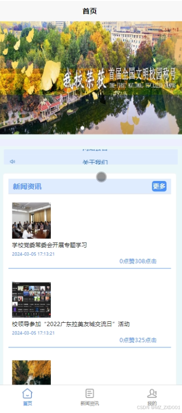 可查看管理员发布的轮播图、系统公告、新闻资讯等信息。界面如下图所示。