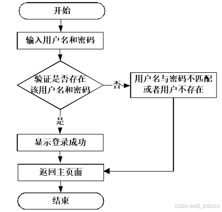 | 事件流 | (1)用户在登录页面输入用户名和密码 (2)系统检测用户输入的用户名和密码是否正确 (3)用户名和密码正确的话,显示登录成功并返回主页面 |