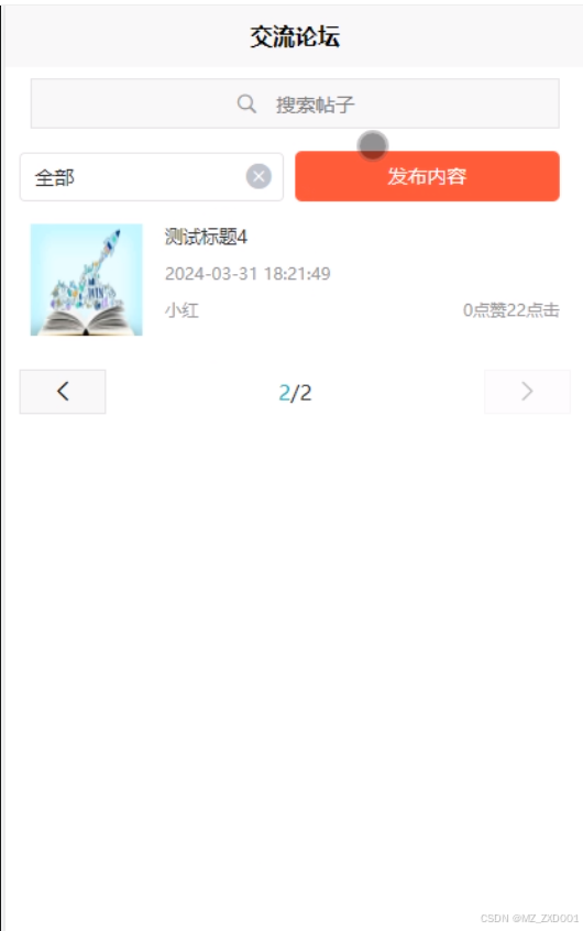 - 交流论坛:用户点击首页正下方的“交流论坛”进入页面可以查看论坛列表中某个论坛的详并可以点赞和评论;点击“发布内容”进入页面填写标题、分类、正文等信息后点击“发表内容”即可完成论坛的发布。