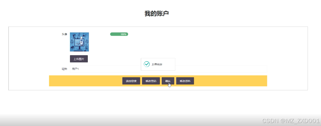 用户资料修改模块的实现是指在违法犯罪防范科普平台中,为登录用户提供一个功能,允许他们修改个人信息。通俗易懂地说,这个模块就像一个编辑界面,用户可以在上面更改个人头像、昵称信息。功能界面图如下: