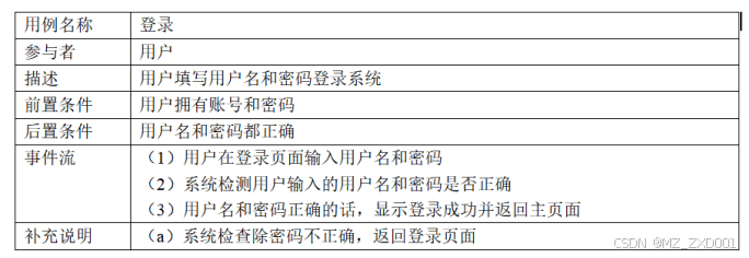 表3-3 登录用例描述