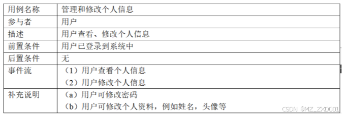 个人信息管理用例描述如下表所示。
